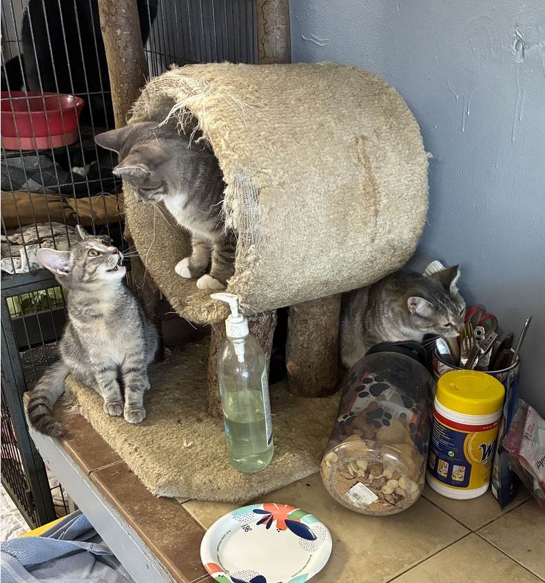 MAGGIE, MILLIE, BISCUIT & MUFFIN are siblings who were trapped for TNR. We thought they were young enough to socialize but, alas, they are not comfortable with being touched. They do love us when it’s mealtime though! We would love for them to find barn homes where they can safely live the life they were born into. We will help with the transition to make sure they are safe during this potentially stressful event. Would love for them to go in pairs – we have 2 girls and 2 boys in the litter. They were born spring 2025. Kittens have been spayed/neutered, vaccinated and are FIV/Leukemia negative. Please fill out an application at www.companimals.org. Adoption $100 per pair.