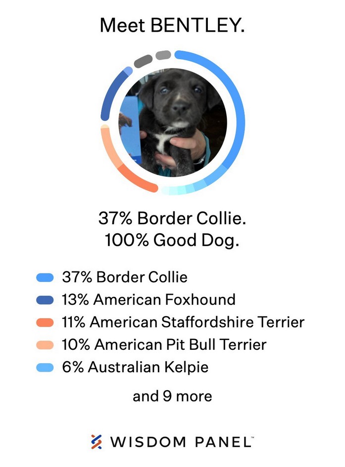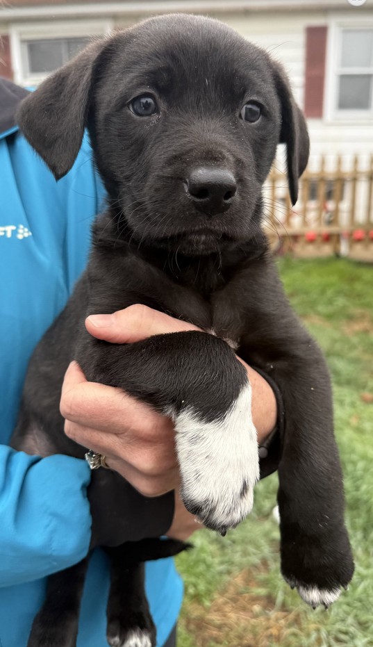 PORSCHE is one of Maserati’s six puppies. MAZI is a sweet girl, a good mama and loves everybody, even strangers! We’re hoping the puppies take on her personality. Dad was a traveling salesman – most likely of the hound of variety. Attaching a copy of the DNA results to this listing. The highest percentage of their heritage is of the herding breeds so we’re looking for active, dog oriented homes. Porsche is the biggest of the girls and she’s easy to spot because of her right front foot that looks like she stepped in a paint bucket! Porsche does have a hernia but that will be fixed at the time of her spay. Adoption fee of $350 will cover a eventual spay/neuter when they are old enough. Vets are now recommending after the first heat for girls and after the growth plates close for the boys – this helps prevent some health problems as they mature. The puppies have received their deworming and will have their first vaccine and are totally weaned from mom. They turned eight weeks old on Easter day and are available now. We do ask that adopters of puppies under 12 months of age attend a basic obedience class with them. We find that this results in a more confident, settled pup and reduces returns down the road. We can recommend a group class with a positive reinforcement trainer. If you feel like your family is up to puppyhood, please fill out an application at www.companimals.org.